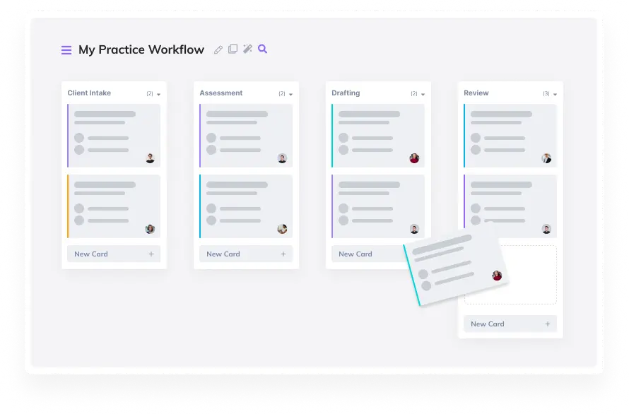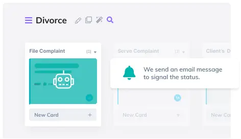 I love the automation of Legalboards. Cases get put on a track and move through the stages as tasks are done. I can now see the status of all my cases in a single board. It has been game changing. No more trying to remember to do this or who did that. All tasks are there as due or completed.”
